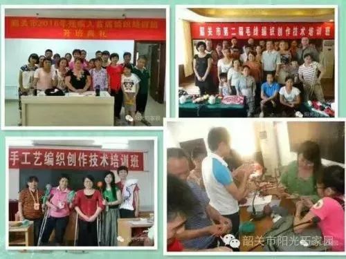 韶关市阳光巧家园2011年7月在市残联的支持下组建起来,2013年7月经韶关市民政局批准注册为韶关市首家民间非营利性公益助残社团组织。服务对象全部是残疾人士,包括:肢残、聋哑、脑瘫、轻微智障、精神等。对重度的肢残人士(坐轮椅)只要双手灵活都能做。2014年韶关市阳光巧家园的创新项目“编织自强人生”开始实施,项目的主要目的是免费对残疾人士进行手工编织培训,培训包括编织、串珠、剪纸 、绣花、书画装裱集生产加工售销于一体。旨在帮助残疾人士学习技能、自主创业,实现自力更生。通过学习手工编织,让残疾人士手、脑相互配合,从而帮助残疾人实现就业和康复康疗。几年来阳光巧家园已有1000多名残疾人士参加培训学习编织手工技术,使不少的残疾人士掌握了编、钩、绣、串珠、剪纸、装裱等的技术。