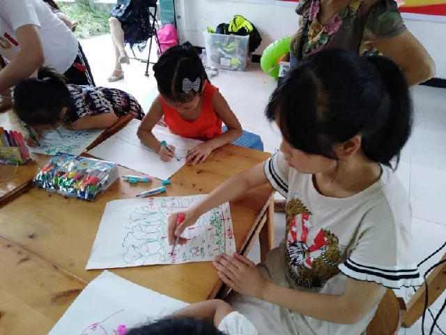 之后孩子们在志愿者地组织带领下,走访了自己家社区的河道,并仔细观察了其中的风险和资源。最后在教室里面,通过孩子喜欢的绘画,绘制出河道图。