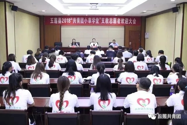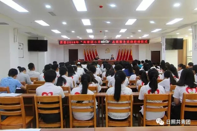 7月17日,莒县团县委举行了2018年“共青团小草学堂”志愿服务活动启动仪式。来自曲阜师范大学、山东大学、泰山学院的大学生志愿者、“共青团小草学堂”所在乡镇街道团委书记约90余人参加启动仪式。