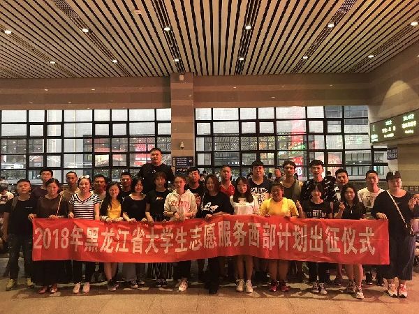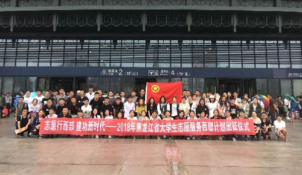 7月19日、22日,黑龙江省2018年服务新疆、服务西藏西部计划志愿者在哈尔滨站、哈尔滨西站分别举行出征仪式,来自黑龙江省50余所高校的200余名西部计划志愿者整装待发,奔赴西藏、新疆、新疆生产建设兵团、四川等地。黑龙江省项目办有关同志前往车站为志愿者们送行。