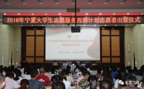 7月25日下午,2018年宁夏大学生志愿服务西部计划出征仪式在自治区党校隆重举行。
