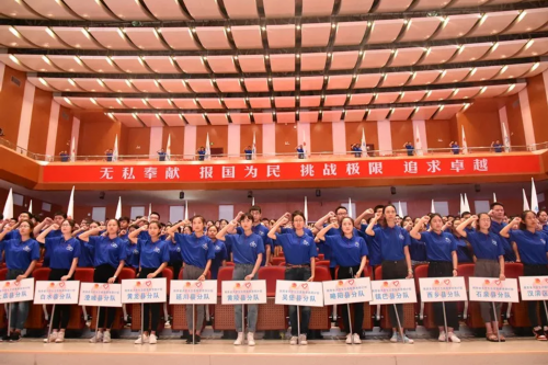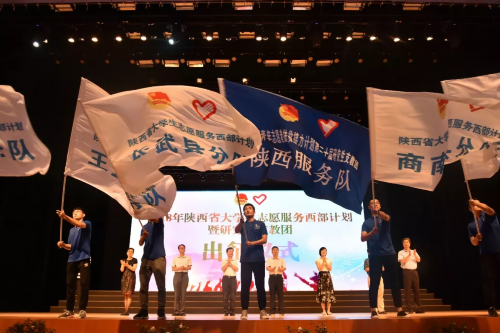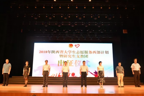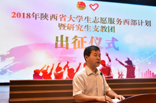 7月27日上午,2018年陕西省大学生志愿服务西部计划暨研究生支教团出征仪式在西京学院隆重举行。团省委党组成员、省少先队总辅导员赵大胜,省委高教工委副书记李智军和省教育厅、省财政厅、省人社厅、西京学院等单位负责同志出席活动。
