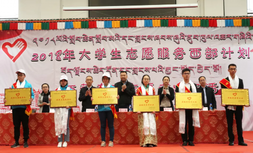 仪式上,共青团西藏自治区委员会、西藏自治区青年志愿者协会决定授予高星等 199 人为“2017—2018 年度大学生志愿服务西部计划西藏专项优秀志愿者”,授予清华大学、 中南民族大学、中山大学研支团 3 个集体为“第 19 届研究生支教团优秀志愿者服务队”,授予那曲市等 12 个项目办为“2017—2018 年度优秀项目办”。