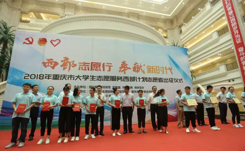 为2017-2018年度重庆市西部计划优秀志愿者代表颁发证书