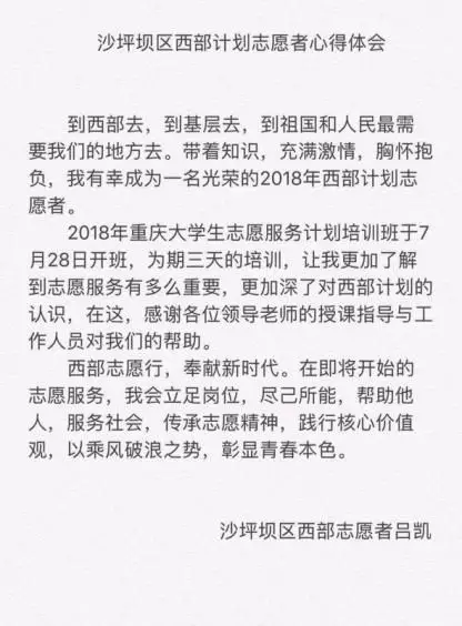 到祖国最需要的地方锻炼成长,为边远山区基础教育事业发展略尽绵薄之力,志存高远,脚踏实地,用爱浇灌祖国未来之花!