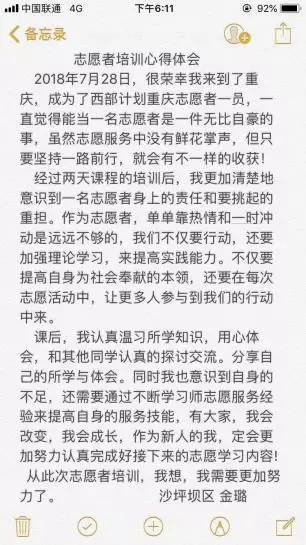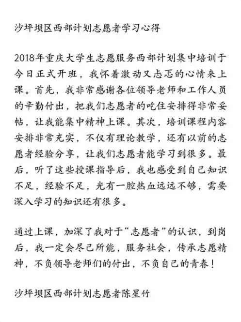 培训结束后,重庆市1100余名西部计划志愿者踏上新的征程,他们将用一年不长的时间,带着祖国人民的殷切期盼,奔赴基层、服务群众,为山水之城美丽重庆的建设努力挥洒汗水与激情,贡献青春与智慧。