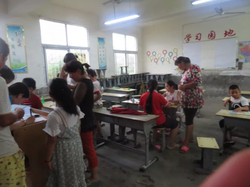 下午两点,在约定的报名时间前,庞庄小学的门前已经开始挤满了家长和翘首期盼的孩子们。支教队员们开始进行忙碌的统计接待工作,距开始报名仅四十多分钟,夏令营的班级名额已经全部招满。部分家长留下来和支教队员们密切交谈进行更深入的了解,而孩子们则已经带着好奇的目光开始打量布置一新的教室,围着“小老师”们蹦蹦跳跳说说笑笑,开始期待明天的课程。