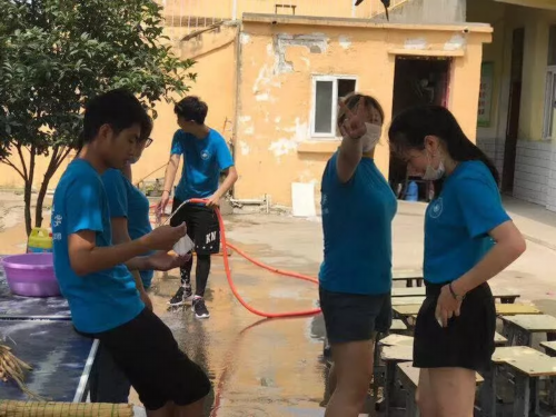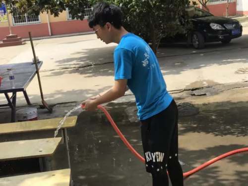 7月23日,五位队员于吉林省长春火车站集合出发,在火车上历经一天一夜的颠簸终于来到了本次爱心支教活动的目的地——河南省南阳市庞庄村庞庄小学。下车后受到了庞庄小学校长的热情接待,当地三十八度的烈日酷暑并没有浇灭队员们支教的热情。在简单的行李整顿之后,队员们迅速打起精神开始清洁桌椅、布置教室为明天的夏令营招生工作做准备。