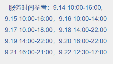2.绝大部分岗位需要连续工作8天(9月14-22日),个别岗位可以9月14日不工作。