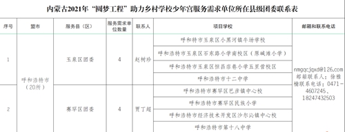 内蒙古2021“圆梦工程”助力乡村学校少年宫联系表