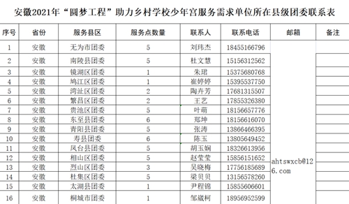 安徽2021“圆梦工程”助力乡村学校少年宫联系表