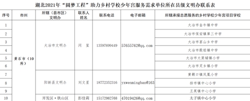 湖北2021“圆梦工程”助力乡村学校少年宫联系表