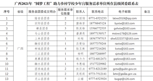 广西2021“圆梦工程”助力乡村学校少年宫联系表