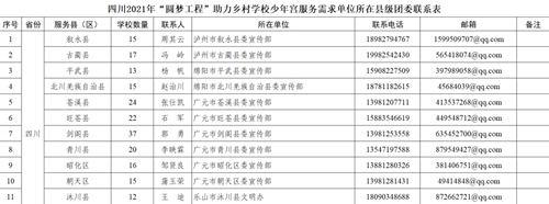 四川2021“圆梦工程”助力乡村学校少年宫联系表