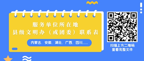 按照有关工作安排,服务地各县级团委或文明办将于6月30日前完成对申报团队的遴选工作,明确各个团队的具体服务单位。7月上旬,主办方将协同相关省级团委,统一汇总入选团队信息,并通过“中国青年志愿者”微信公众号进行公布,统计支持物资邮寄地址并启动物资配送工作。