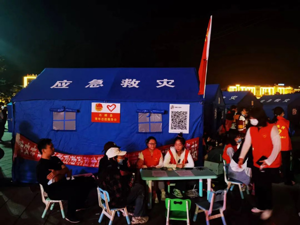 同时,团甘孜州泸定县委、团甘孜州康定市委分别紧急招募组建了应急志愿服务队伍,正在参与秩序维护、场地消杀、帐篷搭建、物资发放等志愿服务工作。